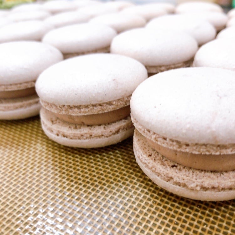 マカロンの本場 パリで学んだ技術をもとに、かわいくて美味しくなるよう研究に研究を重ねたマカロンです。たっぷりなクリームが生地と同じ食感になるようにしています。